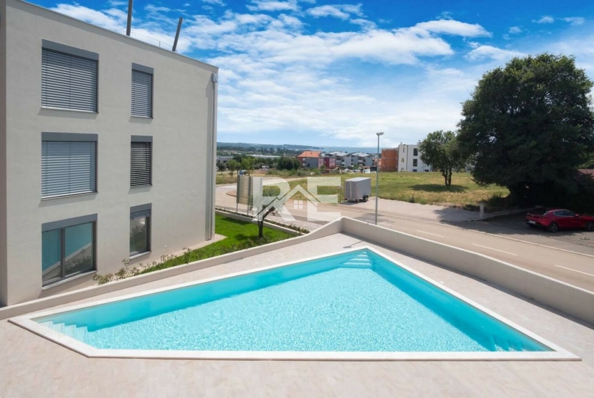 ✨ Moderní apartmán s roof-top terasou, vířivkou a bazénem – blízko moře, v novější rezidenci.