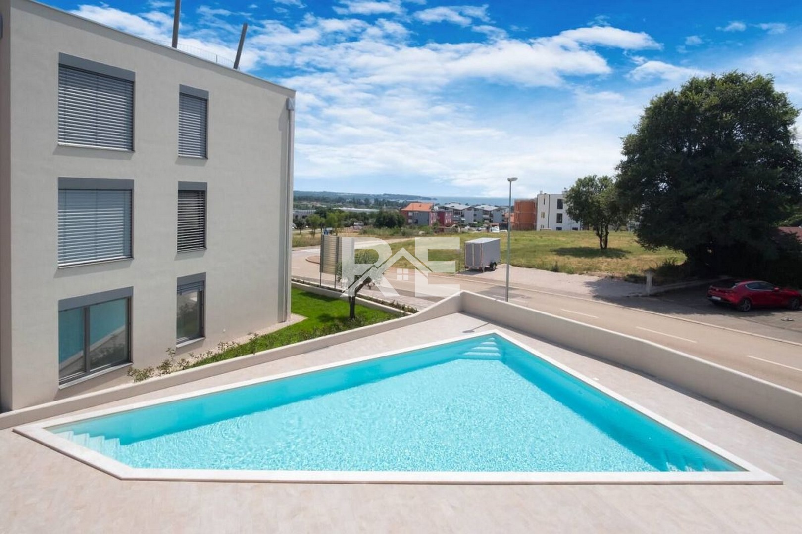 V jedné z nejvyhledávanějších částí Novigradu, v novější rezidenční budově (2022) s pouhými 8 byty a společným bazénem, nabízíme exkluzivně k prodeji moderní a ihned obyvatelný apartmán 3+kk s lodžií a střešní terasou s vířivkou, odkud se otevírá otevřený výhled na moře. K pláži a moři je to přibližně 800 m.